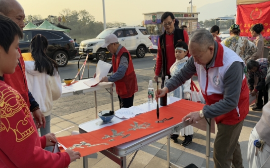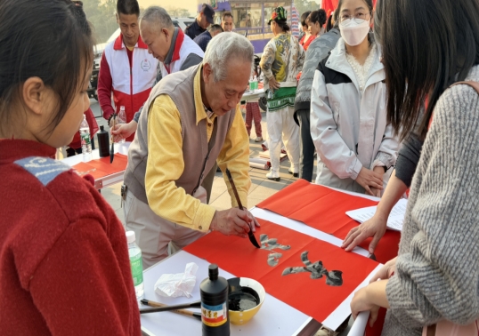 女声独唱、古筝合奏等轮番上演,在精彩节目表演的间隙,还穿插了趣味性十足的互动环节,形式多样的表演让大家目不暇接,欢声笑语不断。现场还有书法家现场为居民群众免费书写春联,他们挥毫泼墨,或行云流水、或沉稳厚重,“泰运长行 福星高照”等一幅幅寓意深刻的春联、一张张喜气洋洋的“福”字跃然纸上。